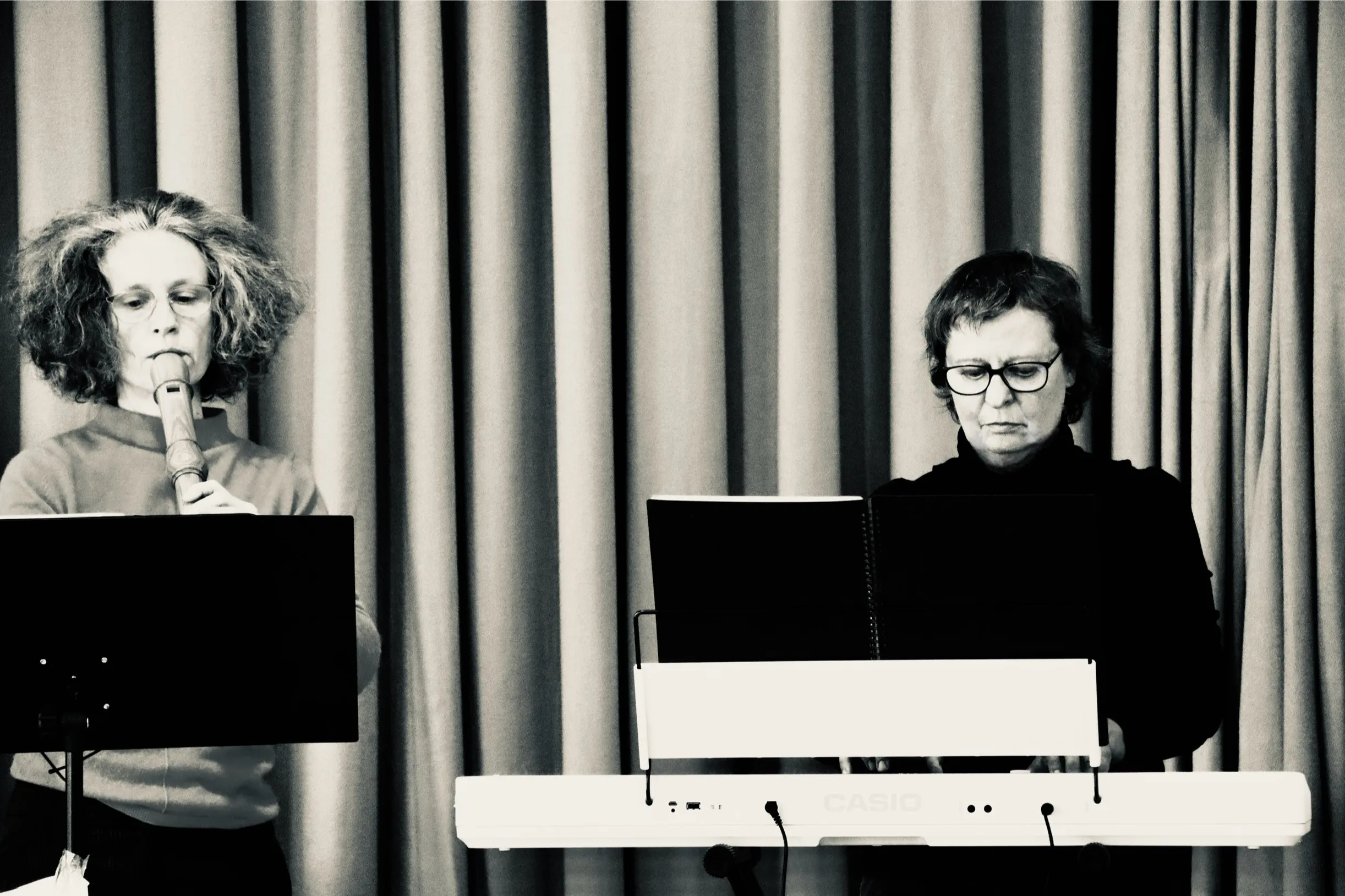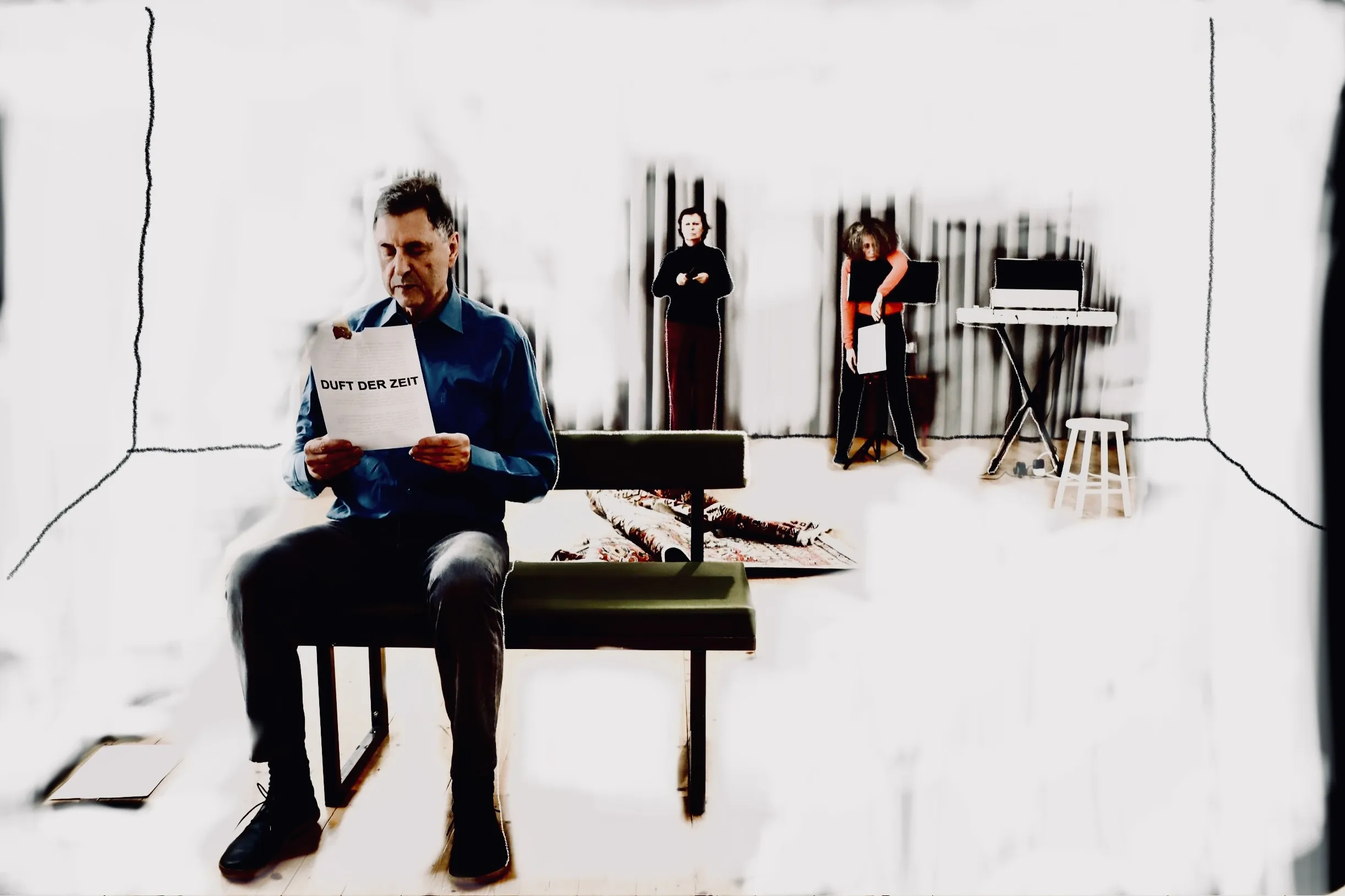 Musik: Daniel Hellbach Ballade, Manolos Song und Ostinato aus Pictures (Bruni Sand Keyboard, Inge Kaindlstorfer Blockflöte, Wolfgang Jagschitz Klanghölzer)