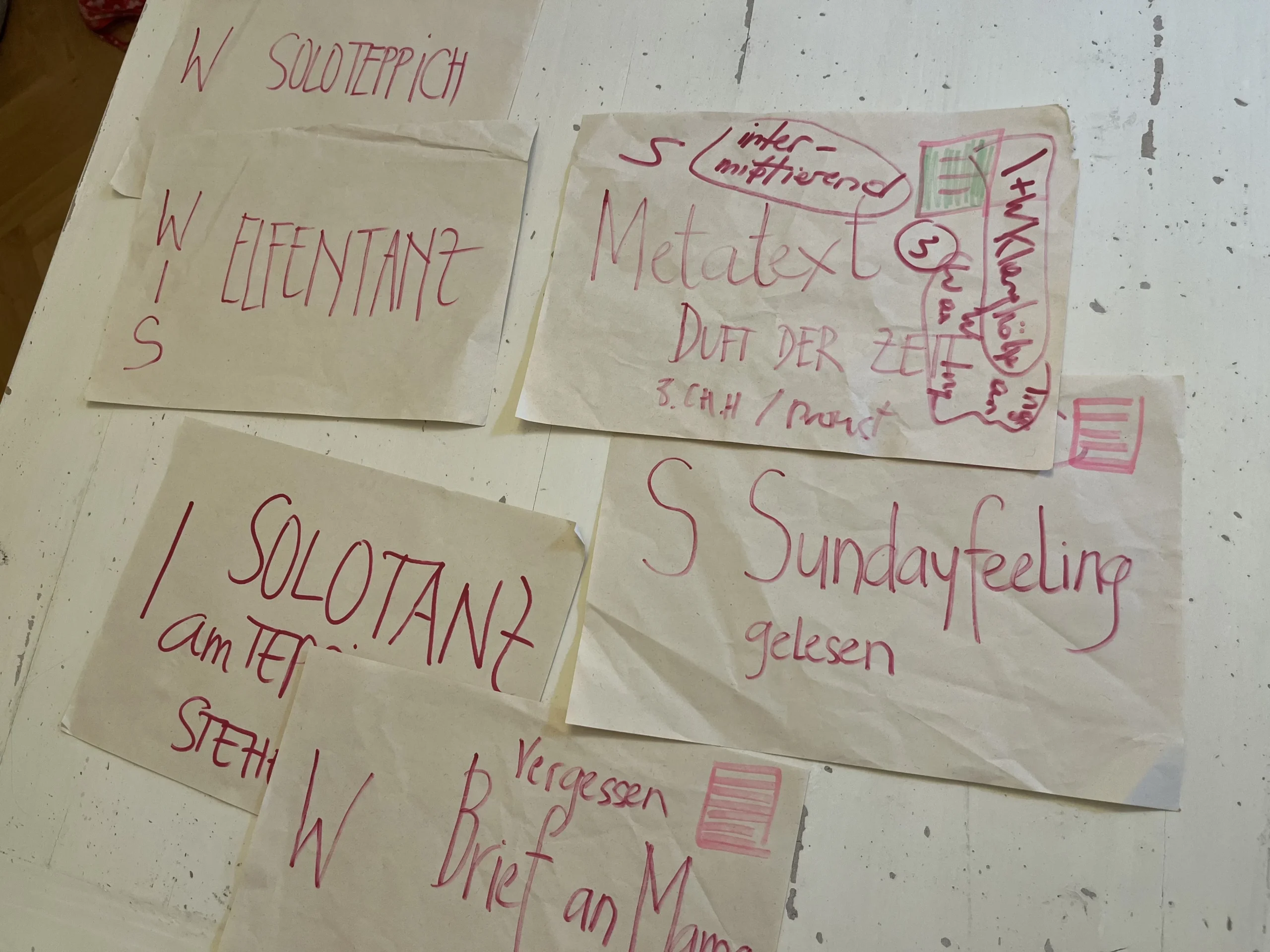Proben und Besprechungen immer wieder zu diesem 60-minütigen Stück neben dem Studio 1 und 2 im TANZ*HOTEL auch immer wieder in der Space Kitchen, von April bis Oktober 2025